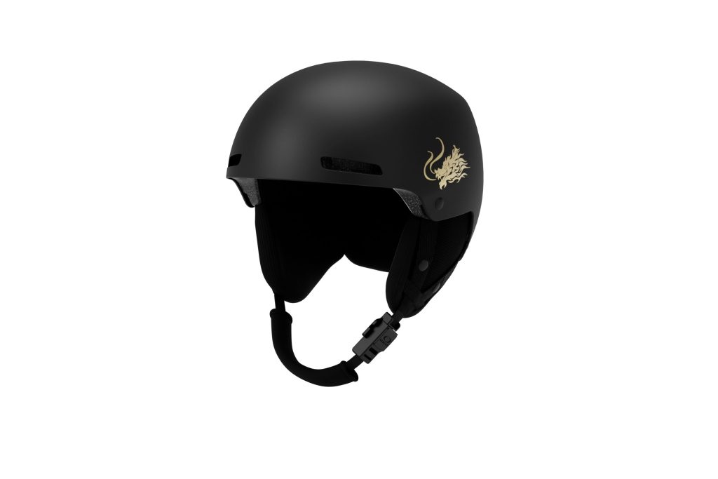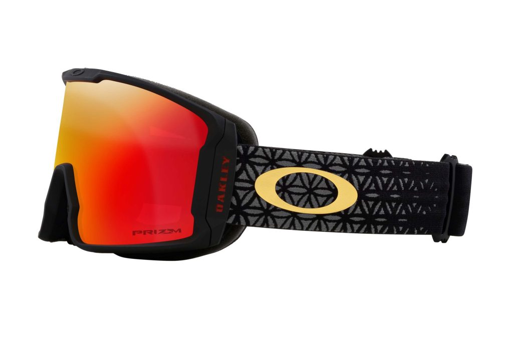 The goggles in the collection are the Line Miner™ Goggles with Prizm™ Snow Torch, which also have the signature geometrical pattern on the strap. The helmet in the collection is the MOD1 helmet, which has hand-drawn dragon logos on the temples.
