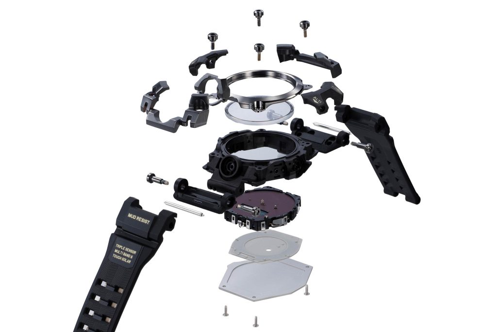 The GWG-B1000 also features a triple sensor that measures compass bearing, altitude/barometric pressure, and temperature. The watch also has solar charging and radio wave reception, as well as smartphone connectivity.