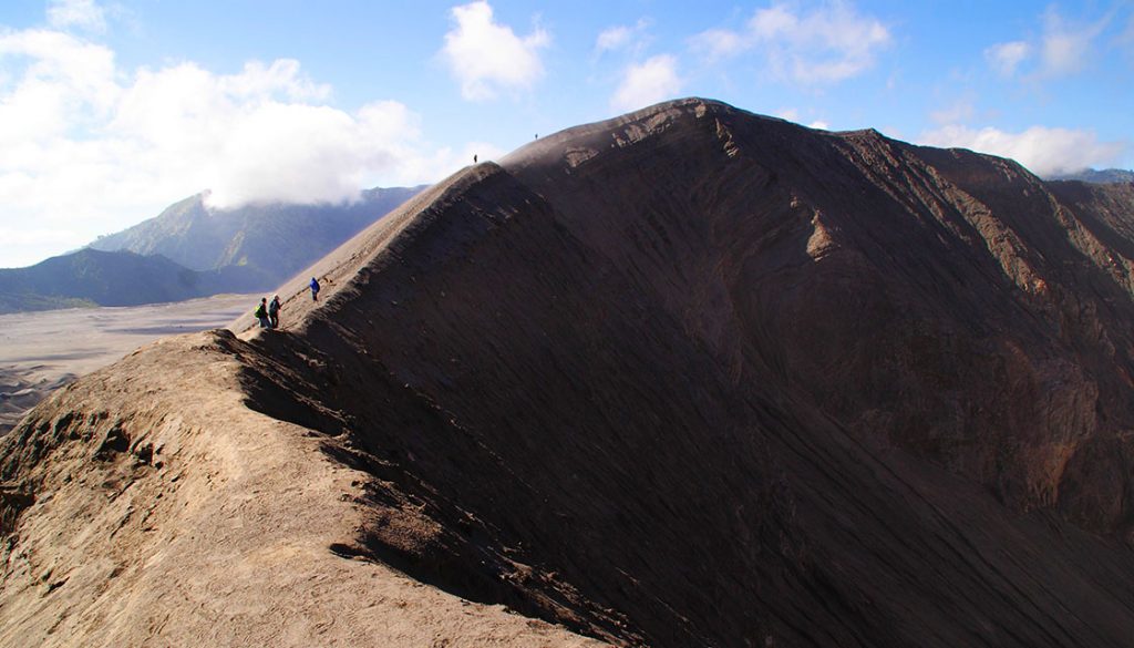 Hiking from the parking area of Mount Bromo to the carter will bring you an amazing experience with estimated one hour of slow walk. Walking on the sandy surface especially during the dry season could be intimidating. Bromo is perched on a “sea of sand”, and it gets very dusty. Powdery sand will be flying about through the desert and up the mountain. Therefore, a good pair of mid-cut hiking shoes is a must!