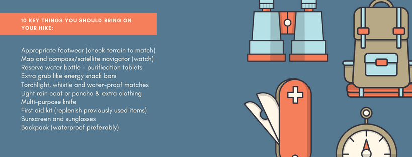 Benjamin Franklin was absolutely right when he said this around the mid-1700s! And to this day, this quote shouts out loud in business, a birthday party, building a garden shed and even hiking. The kids and coach were not so much as ill-prepared; they did not plan at all and walked into a blind spot! How could this happen? Ignorance? Or is it a well-known term of familiarity breeds contempt, except this was danger in this situation. A hike – especially one that you think you are most familiar with of the environment – needs planning of all sorts. I could swamp you with all types of things to bring on your hike but hey, let’s not overdo it as well. Here are 10 key things you should bring on your hike: