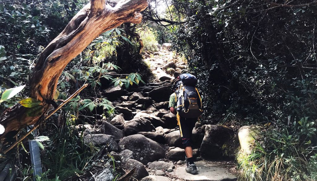 The short but strenuous 6 kilometers on the first day of climbing covered a mostly forest environment. With uneven, rugged, and rocky terrain along the way, my adrenaline rush began to kick in.