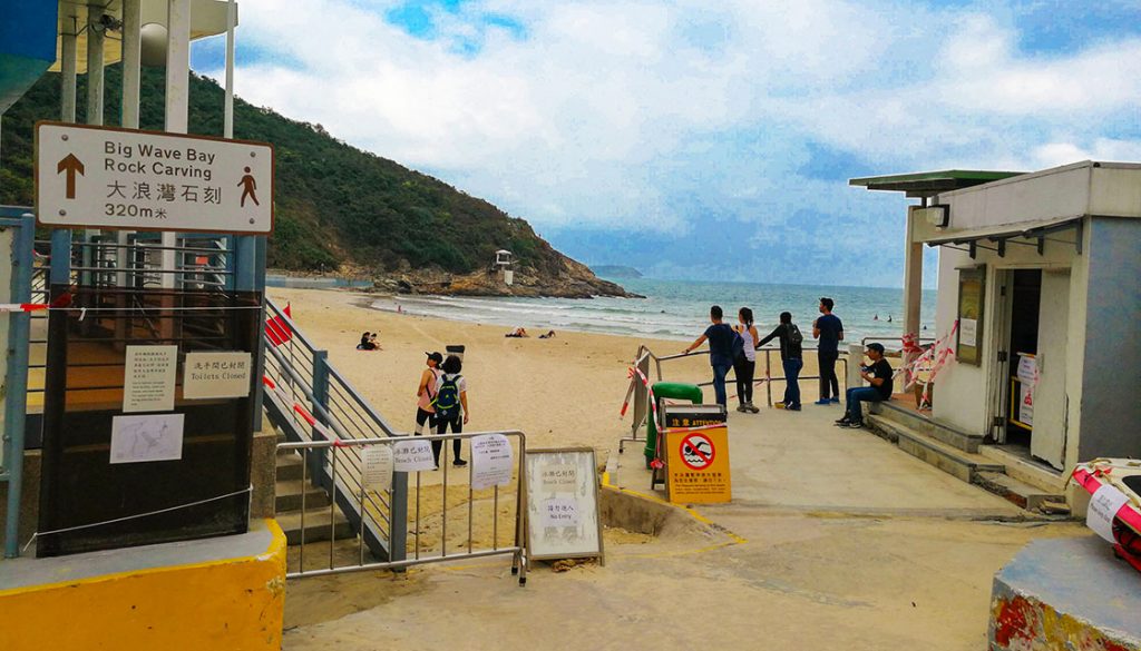 Finally, after hiking for 8.5 kilometres, we approached closer to the end of Dragon’s Back Trail. The Big Wave Bay Beach is located at the picturesque eastern end of Hong Kong Island. It’s also home to a prehistoric rock carving that is now preserved as a Declared Monument. Remaining undiscovered until a police officer stumbled upon it in 1970, the rock carving shows geometric designs and animals and is one of many similar carvings found around coastal areas of Hong Kong.