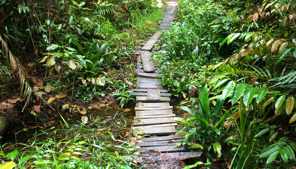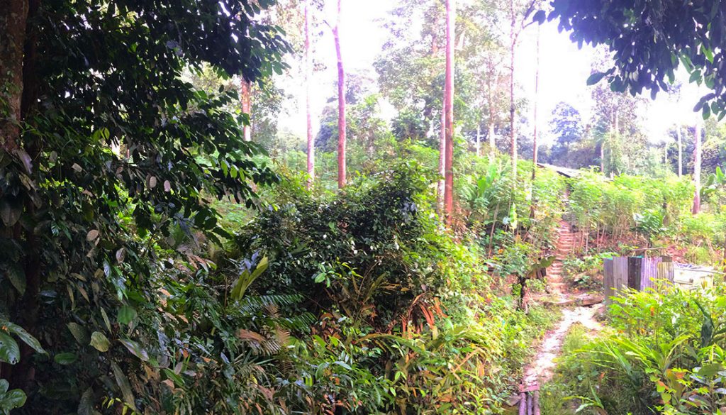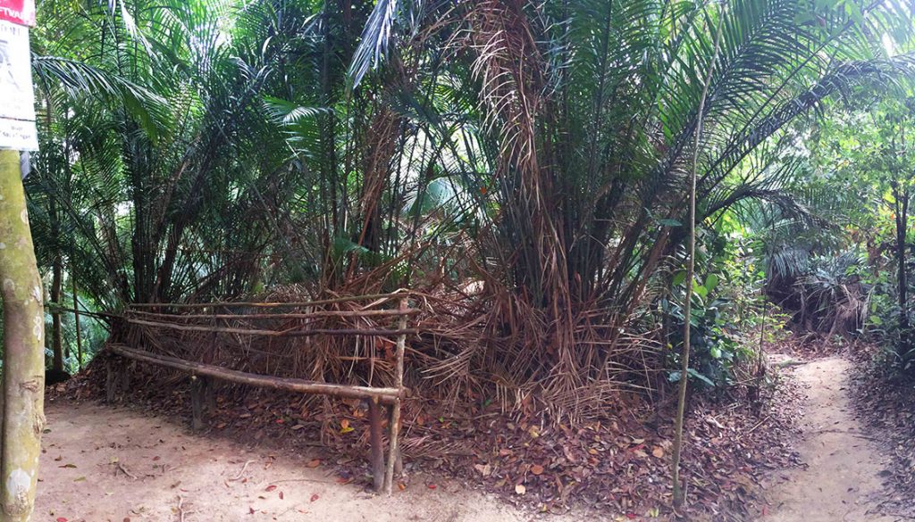 As we inched past the planks, we met with a small wooden planked bridge. The walk further into the jungle was relatively easy and an elderly person in their 60s would have found no resistance. As we were about to trail off left into the forest, we saw some smoke and heard human noises and a dog barking. Not too far off in the distance was a sort of ‘mini-settlement’. We recalled from our previous TBN hike of the four female hikers having told us of an Indonesian kampong (village) toward the bottom of the hill at Bukit Bayu. This was it! My friend was not keen to go nearer and she said it is dangerous. But I am keen on an adventure, and have mini-mastery in the language of Bahasa Indonesia. She said it was not enough to save our lives. I thought that these are not savages or cannibals, yet she refused to go with me, threatening ‘hike abandonment’ if I remained stubborn. I gave in rather mildly…