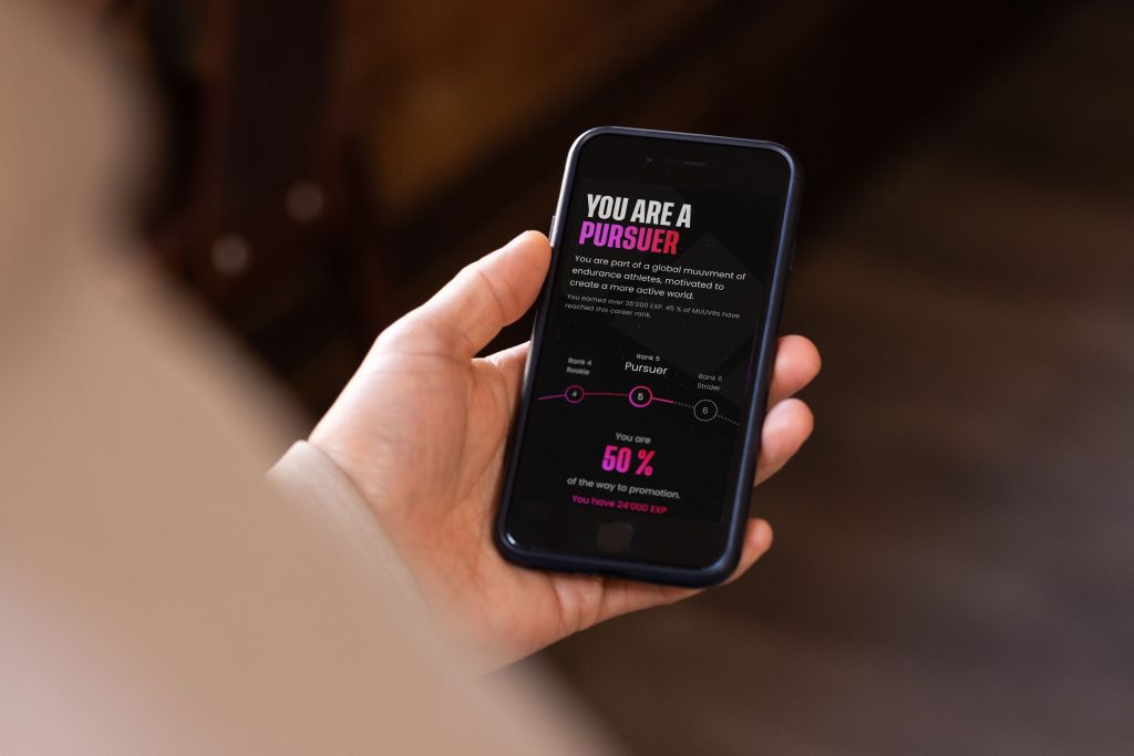 In addition to earning Muuvs to exchange for real-world items, Muuvrs are also motivated by levelling up through career ranks with the activities they complete, unlocking in-app achievements.
