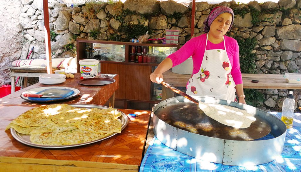 A hiking trip in a foreign land become even more meaningful when you are invited to the home of the villager for lunch. The host cooked Gözleme, a traditional Turkish flatbread, fresh in her courtyard for us. We were even given the opportunity to learn making Gözleme ourselves.